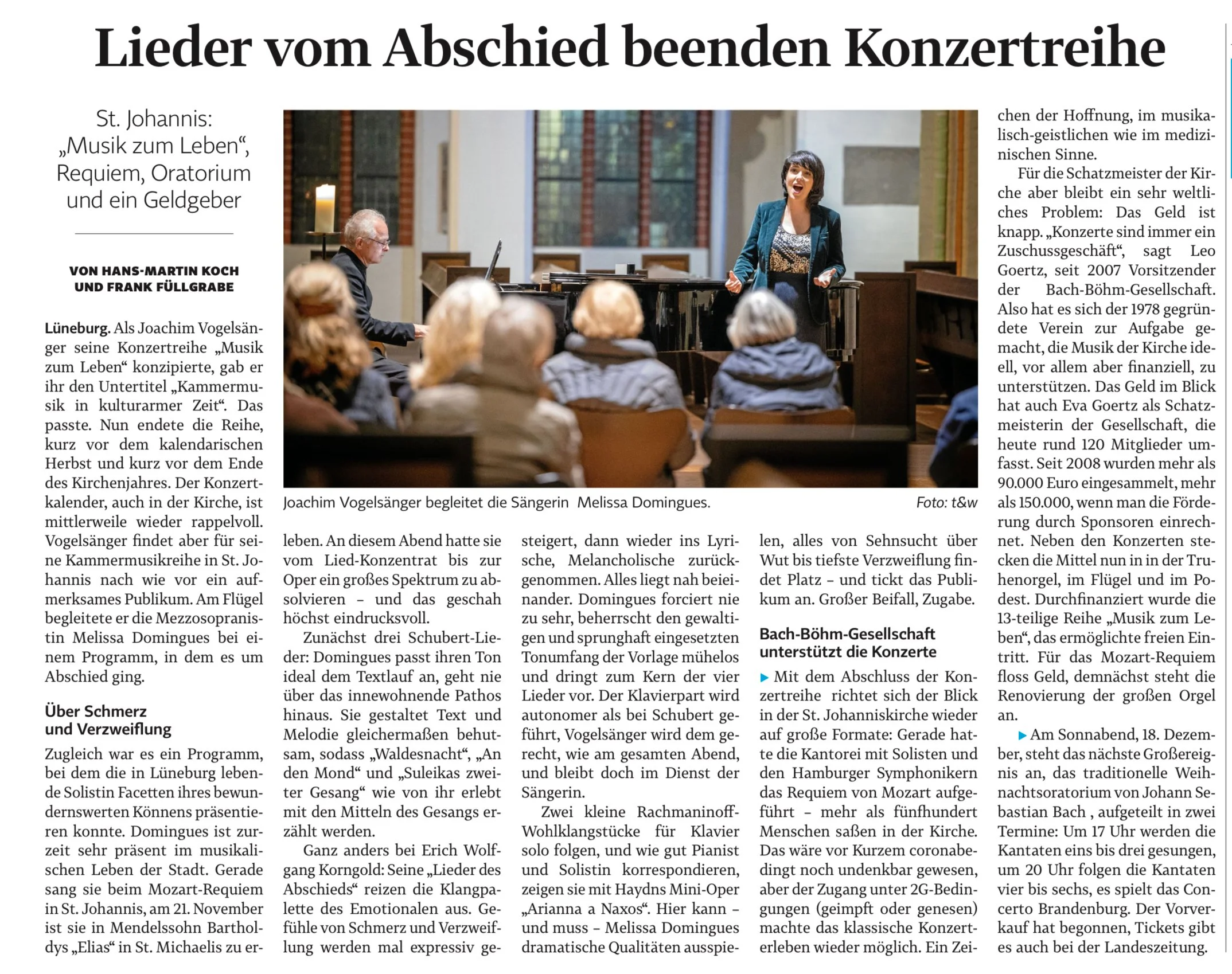 “Domingues’ Stimme machte nicht nur das Zuhören zu einem Genuss, ihre charmante Mimik und Gestik, die von einer tiefen Liebe zu ihrem Schaffen zeugte, zauberte vielen Gästen ein Lächeln auf das Gesicht. (…) Vor über 100 Konzertgästen, für die zusätzliche Bestuhlung in der Krypta herangeschafft werden musste, überzeugte die Sängerin von Beginn an mit einer glasklaren Stimme.”